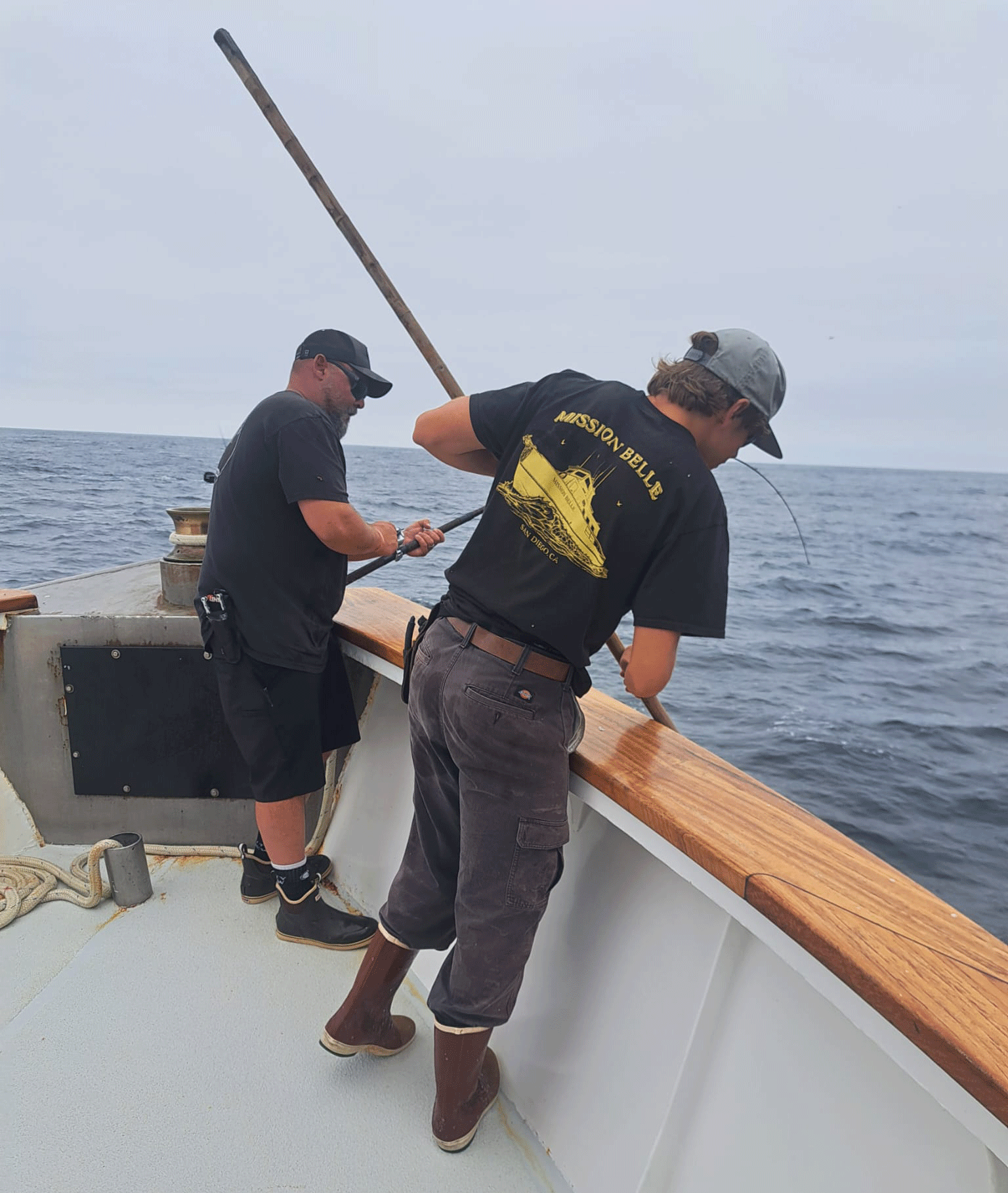 A deckhand on the mission belle. Wearing the shirt proud.
