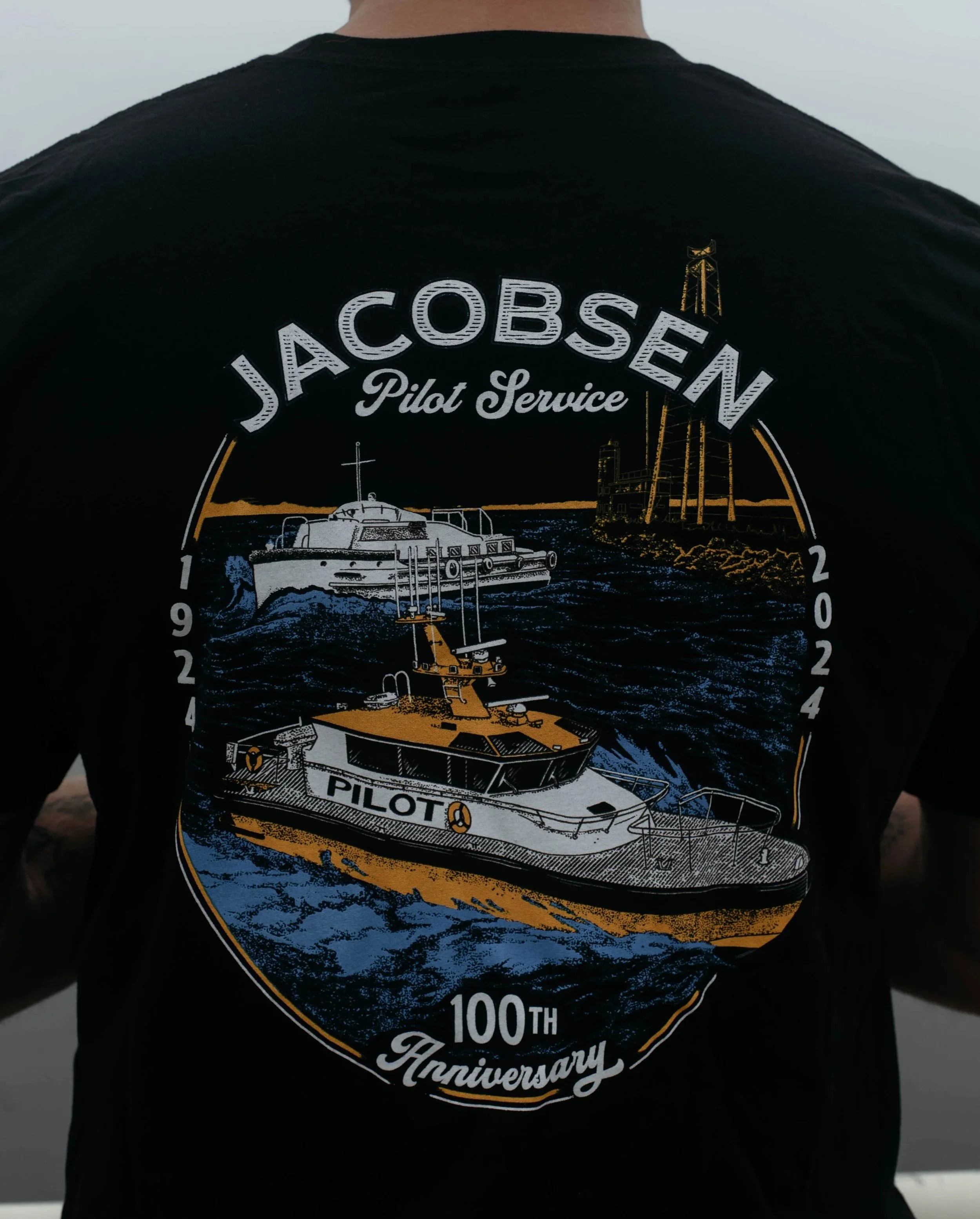 Screen printed apparel for the Jacobsen pilot service.